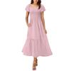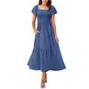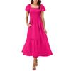 Damenmode Lässiges Maxi-Kleid Quadratischer Ausschnitt Glockenärmel Rüschenkleid mit Taschen