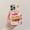 Leder Cartoon Bestickte Kuchen IPhone 16/15 Handyhülle Geeignet für Apple 14/13 Promax Lanyard 12