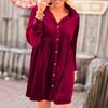 YYFS Damenmode Frühling Herbst Einfarbig Druck Langarm POLO Hals Lose Taille Casual Kleider