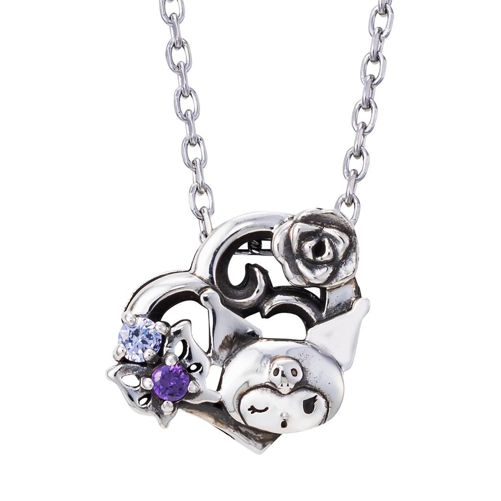 Kuromi Halskette 40cm Silber 925 Chirurgischer Edelstahl 316L Zirkonia Oxidiertes Herz KUROMI Sanrio Figuren [White Clover] SAKU-N054 Damen