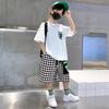 Sommer Jungen Bekleidungsset Teenager Kurzarm Kleidung Anzug Buchstaben T-Shirt Karoshorts 2-teilig Kinder Loungewear Outfits