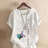 Damenmode Blumendruck Rundhals Kurzarm T-Shirt Lässiges Baumwollleinen Grafikhemd Freizeit Lose Sommer Bluse Tops
