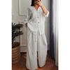 Introducing a stylish and comfortable addition to your wardrobe, this women's two-piece set is perfect for casual outings. Crafted from a blend of polyester materials, the set includes a long-sleeve shirt and matching pants, both designed for ease and versatility. The solid color adds a timeless appeal, making it easy to mix and match with your favorite accessories. Ideal for relaxed days or casual gatherings, this set effortlessly combines comfort with a chic, laid-back style.