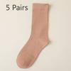 5 Pairs of Pure Cotton Boneless Anti Pilling Mid Calf Socks for Women In Autumn and Winter