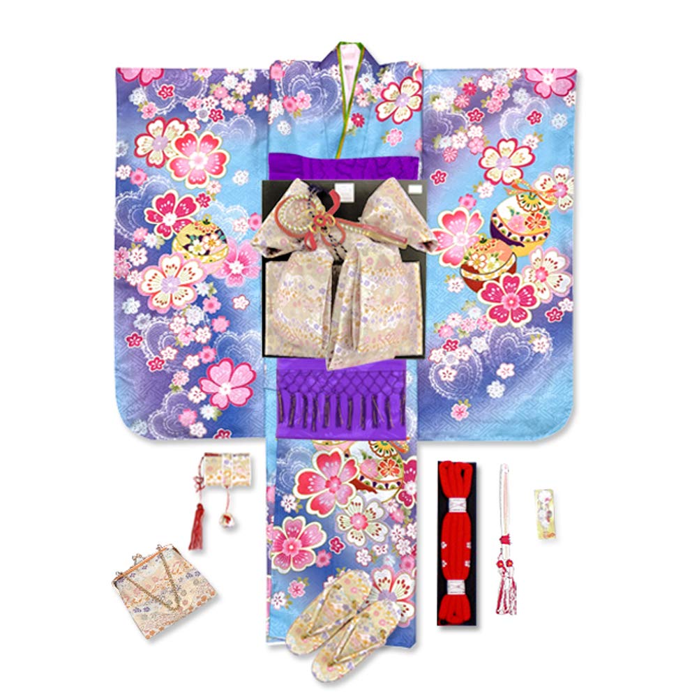 <Kimono> Length: approx. 132cm Sleeve length: approx. 58cm Sleeve length: approx. 76cm *Comes with a long undergarment. *Half collar not included. *Height and shoulders are not raised. ・Material: 100% polyester ・Production: Made in Japan <Knot obi> Tie obi: approx. 33cm Width of obi: approx. 18cm <Hakoseko・Set contents> ●Hakoseko ●Sandals ●Back ●Maruguke obijime ●Kotobuki fan ●Hirakanzi ・Zori size 21cm Suitable size: Approximately 19cm-21cm ・Materials: Polyester, Nylon (some gold and silver threads are used) <Other accessories> ●Obi-age material: Pure silk ●Shikoki material: Polyester ●Half-collar ●Two-part underwear set ●Sock Tabi 19-20cm *If you would like to change the size of the tabi, please contact us immediately after purchase via ``Account Service'' → ``Order History'' → ``Contact Seller.'' ●Waist straps (3 pieces)