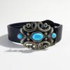 Bohemian Court Style Retro Ethnic Imitation Turquoise Black Decorative Belt Rose Pattern Embossed Wide Belt Female