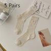5 Paar Damen Frühling und Sommer Dünne Stickerei Schleife Hohlrohr Stacksocken