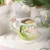 Original Three-Dimensional Relief Tulip Hand-Squeezed Flower Girl Heart Wind Chime Flower, Ceramic Holiday Gift Cup