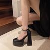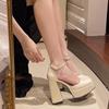 Wasserdichte Plateau-Absätze Damen Sommer 2025 Außenhandel neue eckige Zehenpartie hohle Einzel-Schuhe Ein-Wort-Schnalle Tasche Zehenpartie Damen-Einzel-Schuhe