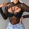 T-Shirt mit Kunstfellbesatz, durchsichtig, transparentes Mesh-Oberteil, langärmelig, durchsichtig, schlank, weibliches Rollkragen-T-Shirt, Spitzen-Crop-Top