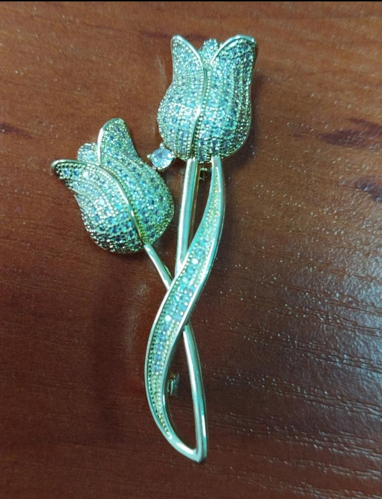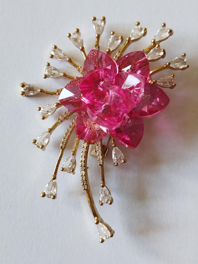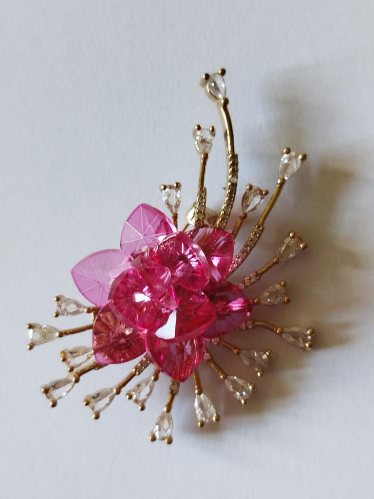 High-End Kristall Zirkon Blumenbrosche: Elegantes Kupfer-Accessoire für Damenmode