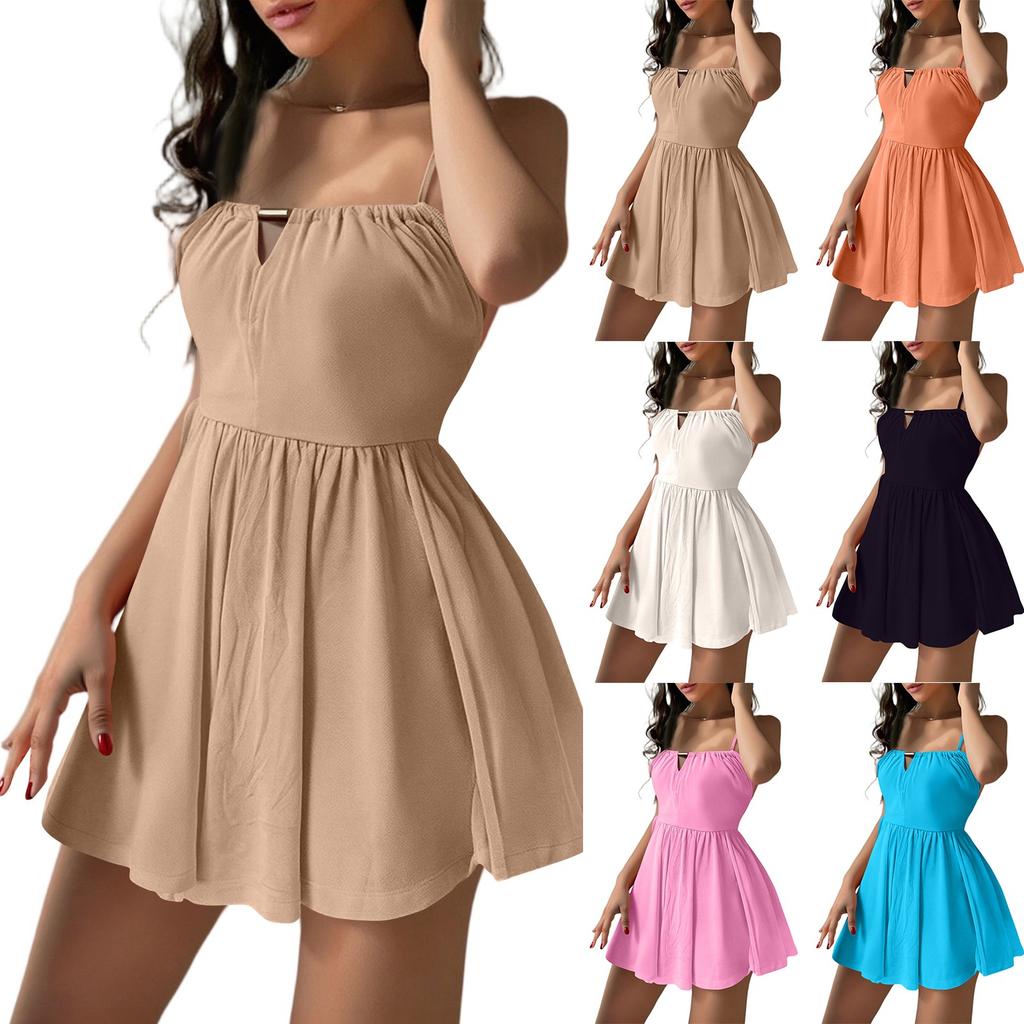 Damen Sommer Shorts Einfarbig Schlaghose Schnürung Ärmelloser Jumpsuit