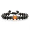 Doppelseitiges Kronenarmband: Imitation Bernstein, Tigerauge und Vulkansteinperlen