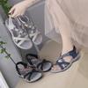 2024 Sommerschuhe Damen Böhmische Sandalen Urlaubsschuhe Flache Damen Sandalen Weich Übergröße 42 Blau A3284