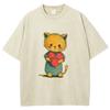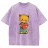 Niedlicher Stil Orange Katze Print Gewaschener Denim Damen T-Shirt Baumwolle Oversized Halbarmliges Mädchenhaftes Basic T-Shirt