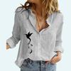 Damen Mode Knopfleiste Bluse Sommer&Herbst Locker Baumwolle Leinen Top Damen Lässig Druck Langarmhemd