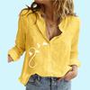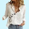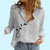 Damen Mode Knopfleiste Bluse Damen Locker Baumwolle Leinen Oberteil Lässiger Druck Langarmhemd