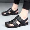 2025 Sommerschuhe Herren Echtes Leder Sandalen Flach Rutschfest Rindsleder Männerschuhe Modemarke Schwarz Gelb Schuhe