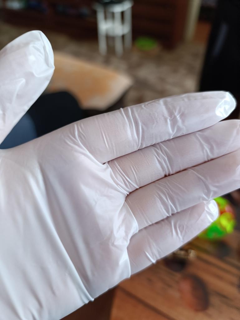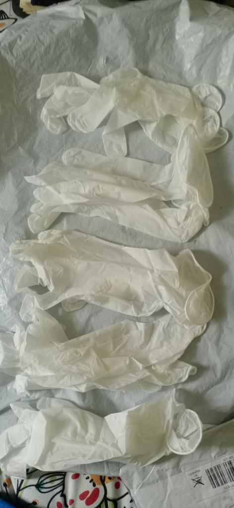Die Handschuhe sind dünn, klein, Größe 8 ist zu klein, sie werden schnell reißen, Einweg