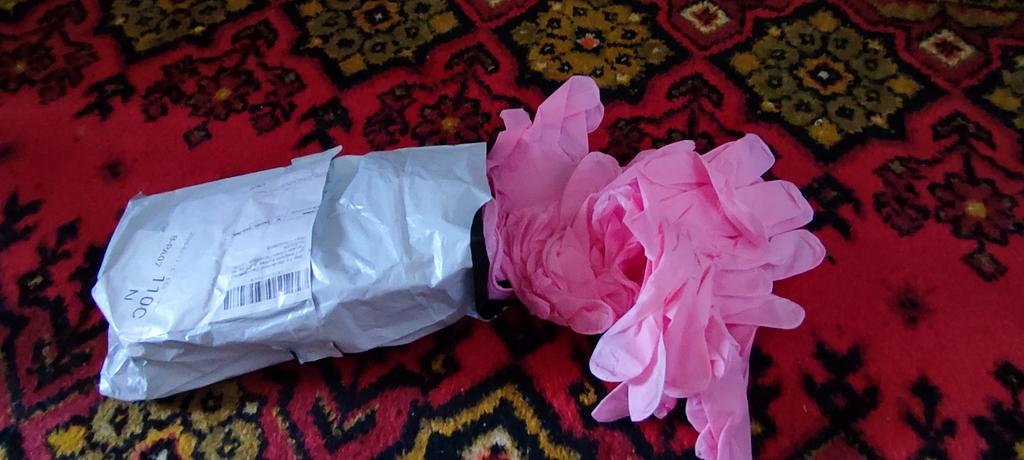 Ich dachte, die Handschuhe würden in einer Schachtel sein, aber sie sind in einer Tüte.