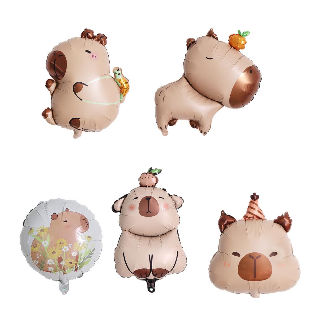 Packung mit 5 Capybar-Folienballons für Partydekorationen, Geburtstage und Feiern, Aluminiumfolienballon