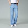 Men's Large Size Mid-Rise Elastic Loose Jeans Men's Casual Straight Light Blue Jeans