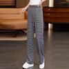 Damen lässige gestreifte Hose mit weitem Bein, Kordelzug, elastischer hoher Taille, locker, gerades Bein