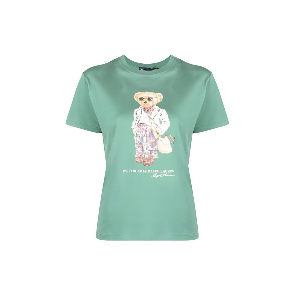 Polo Ralph Lauren Bär-Print Rundhals Kurzarm T-Shirt Damen Tops Grün 211892607-001