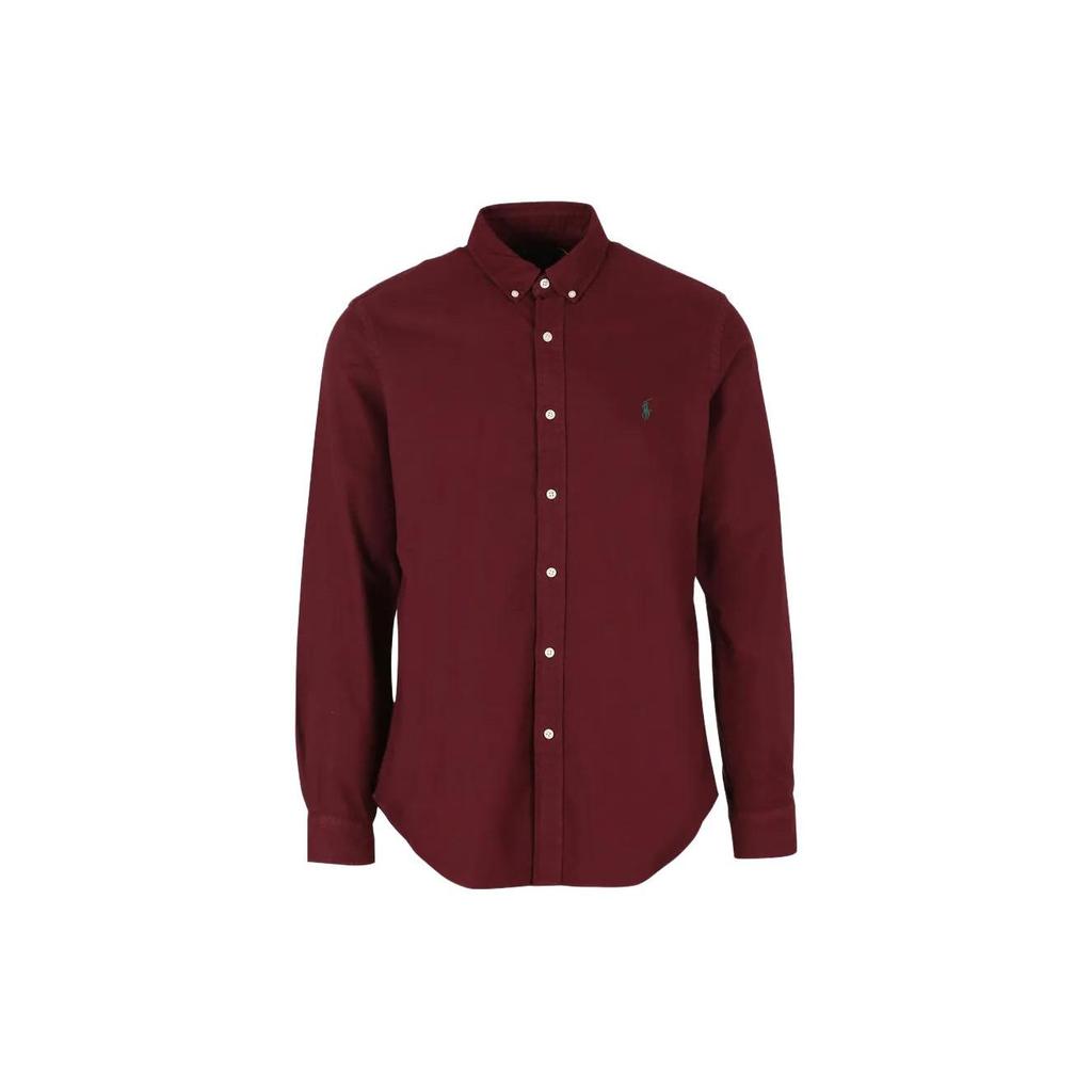 Polo Ralph Lauren Solid Color Brand Logo Embroidered Long Sleeve Shirt Men shirts Burgundy 710804257-041