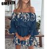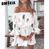 GMXIA Damen Minikleid mit Blumenmuster Sommer Sexy Schulterfrei Glockenärmel Tunikakleid Weiblich Lässig Boho Strandkleid