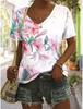 Vintage Floral 3D print T-shirts for women V neck short sleeve T-shirt Y2K flower T-shirts oversize Harajuku Top women clothing