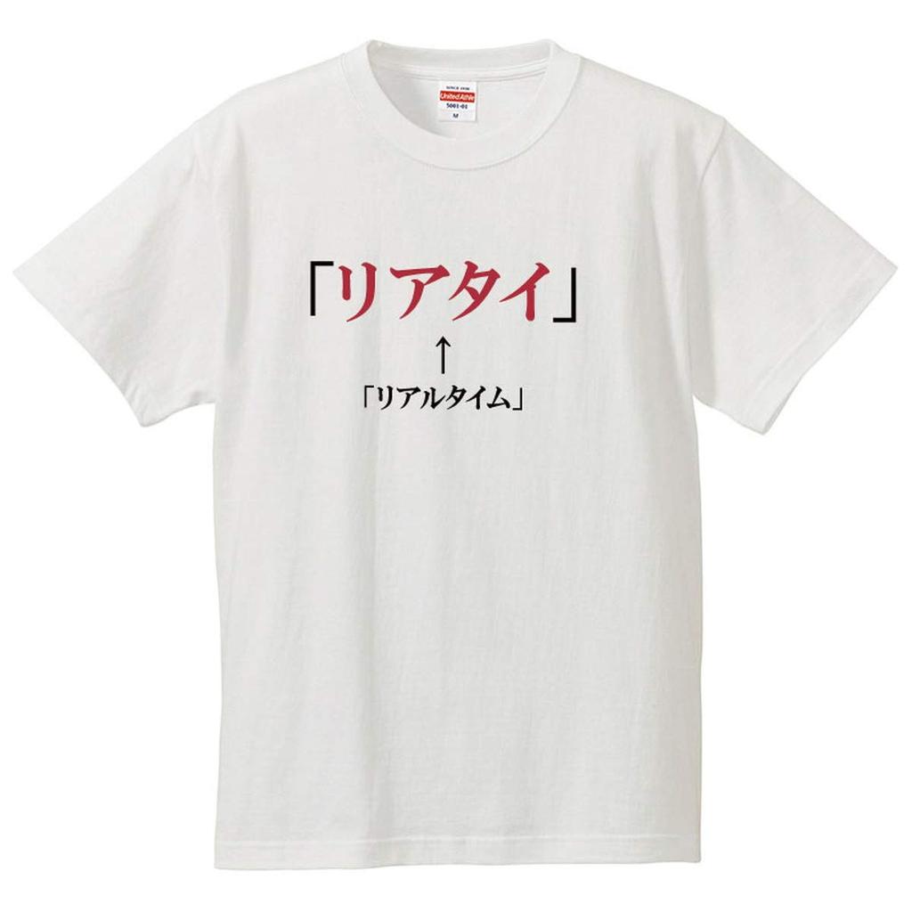 Minami Funny Real Time Hiragana Katakana Japanese Funny Short Sleeve White L Size Horie's T-Shirt "Real Time" T-Shirt Men's