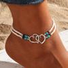 Böhmischer doppellagiger türkisfarbener Herz-Strandfußkettchen für Damen