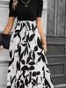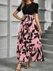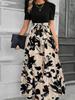 Rundhals Farbblockkleid Damen Kurzarm Blumenmuster A-Linien-Kleider Herbst Elegant Partykleid Robe