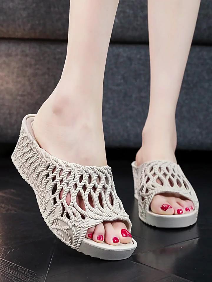 Damenmode Keilabsatz Sandalen - Offene Zehen Dicksohlige Schuhe mit Atmungsaktivem PVC-Material, Bequem für Sommer Freizeitkleidung, Riemchensandalen