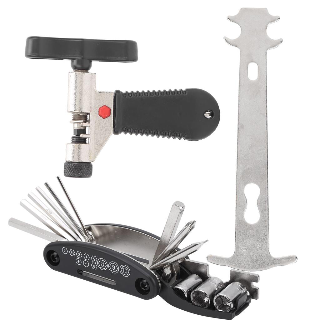 16 in 1 Multifunktions-Fahrradwerkzeug, einschließlich Steckschlüssel 8910mm, Speichenschlüssel, Schlitzschraubendreher, Kreuzschlitzschraubendreher, Stecknuss-Verlängerungsstange, Gabelschlüssel 81015mm, Innensechskantschlüssel 22.5 3456mm.