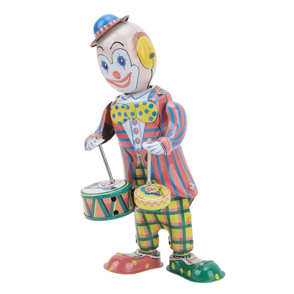 Aufzieh-Clown Blechspielzeug Retro Uhrwerk Clown Schlagzeuger Figur Vintage Clown Spielzeug für Kinder Schreibtisch