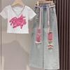 Mädchen Set Sommerkleidung Kinderbekleidung Sommer T-Shirts Mädchenbekleidung Modische und Stilvolle Jeans