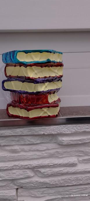 Literarisch inspirierte Kunst: Ein Gesprächsstarter für Buchliebhaber: Dieser farbenfrohe Buchbecher hat die Form eines Stapels farbenfroher Bücher und verbindet literarischen Charme mit Wohndekor.. Es ist perfekt für Leser, Schriftsteller, Pädagogen und Bibliothekare und verleiht jedem Raum einen Hauch intellektuellen Flairs.