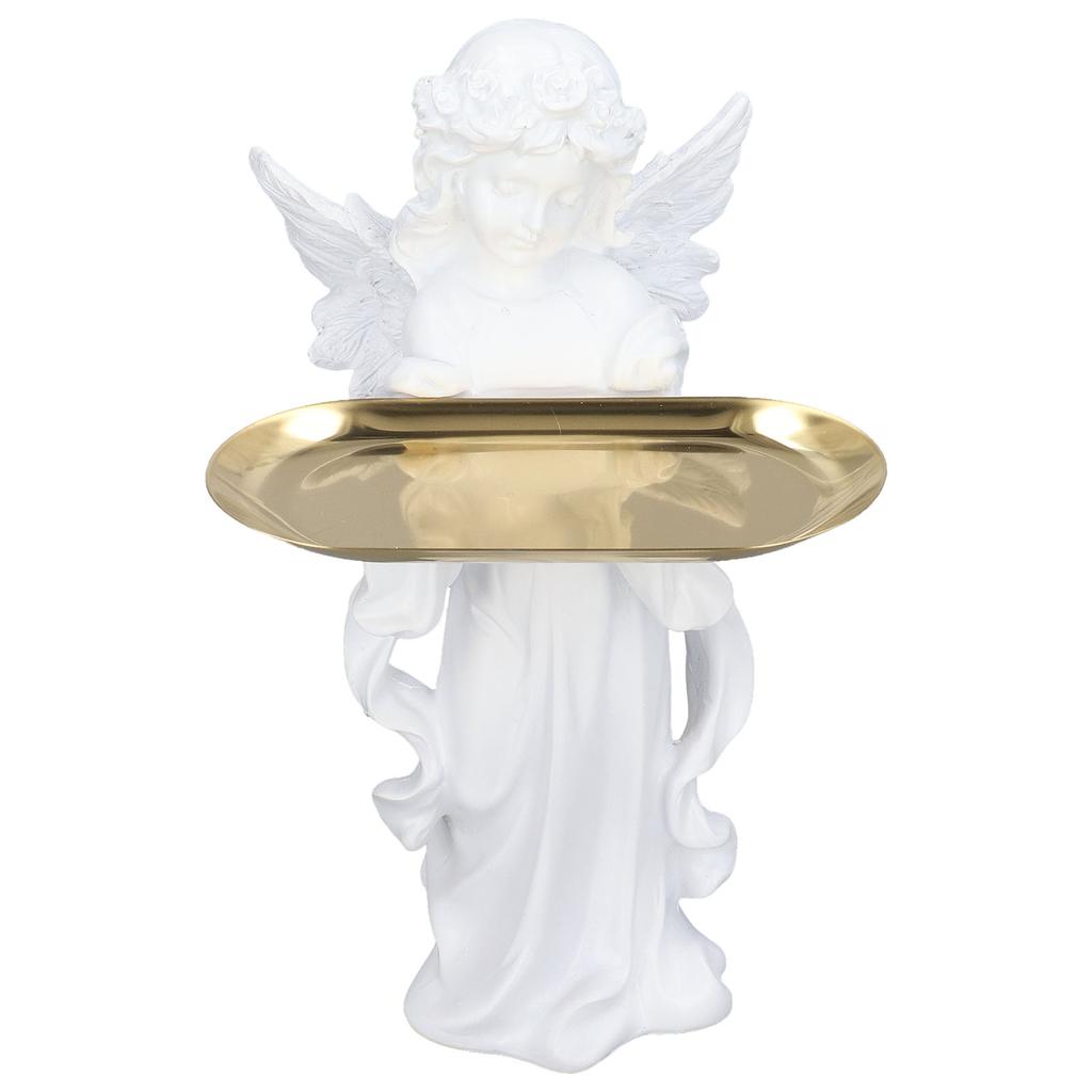 Engelfigur Synthetisches Harz Dekorative Schmuckaufbewahrung Engels-Skulptur mit Legierungsablage für