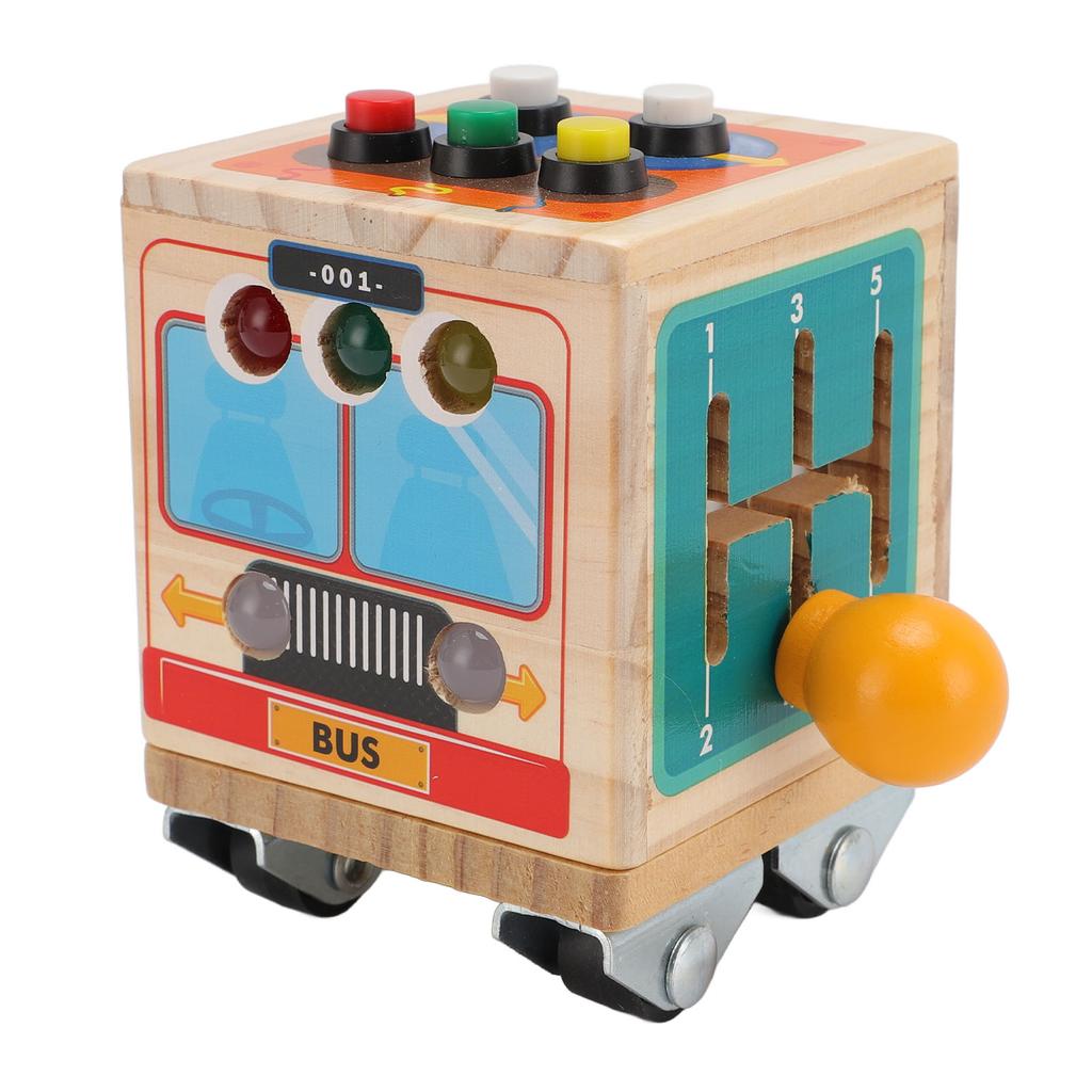Wooden Activity Cube Board Educational Bus Shape Electronic Switch Simulation Sensory Baby Toy