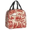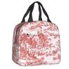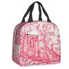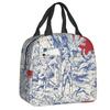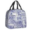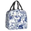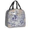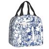 Marineblaue isolierte Lunchtasche mit Toile de Jouy-Muster für Schule, Büro, thermische Kühlbox, Damen, Lebensmittelbehälter, Tragetaschen