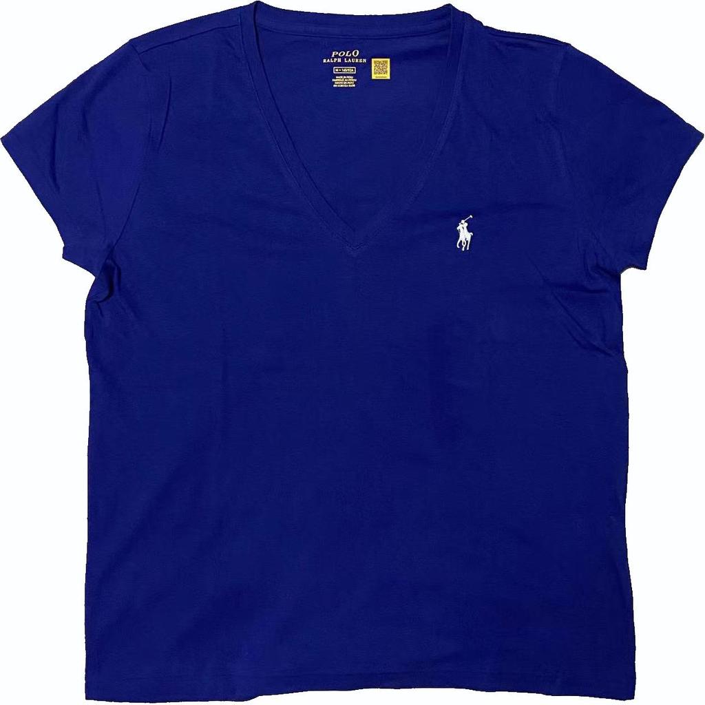 Polo Ralph Lauren Einfarbiges T-Shirt mit Pony-Stickerei V-Ausschnitt Kurzarm Damen Oberteile Blau 211682523-086
