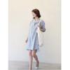 Striped Shirt Dress for Women Five-quarter Sleeves Irregular Shirt Dress with Short Front and Long Back