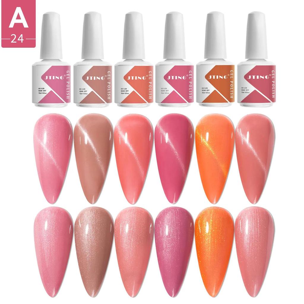 JTING Super Popular pink and Nude 6colour Nail Gel Polish Collection Oem Customize Nail Set Box Uv Gel Polish 15ml Bottles