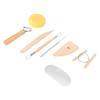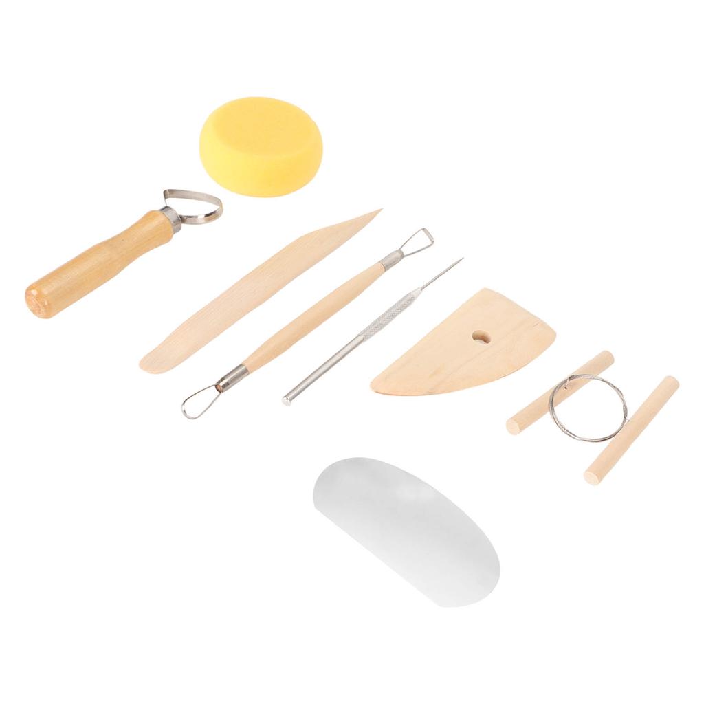 1 x Needle1 x Circular Flat Knife1 x Flat Wire Cutter1 x Pottery Rib1 x Clay Cutting Rope1 x Sponge1 x Carving Tool1 x Metal Scraper
