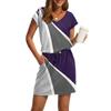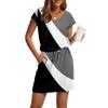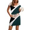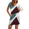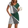 Damenmode V-Ausschnitt Kurzarm Kordelzug mit Tasche Bedruckte Freizeitkleider