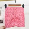 Pfirsichfarbene Yoga-Shorts mit Leopardenmuster und hohem Bund - Schnelltrocknende, dehnbare Hotpants für Damen