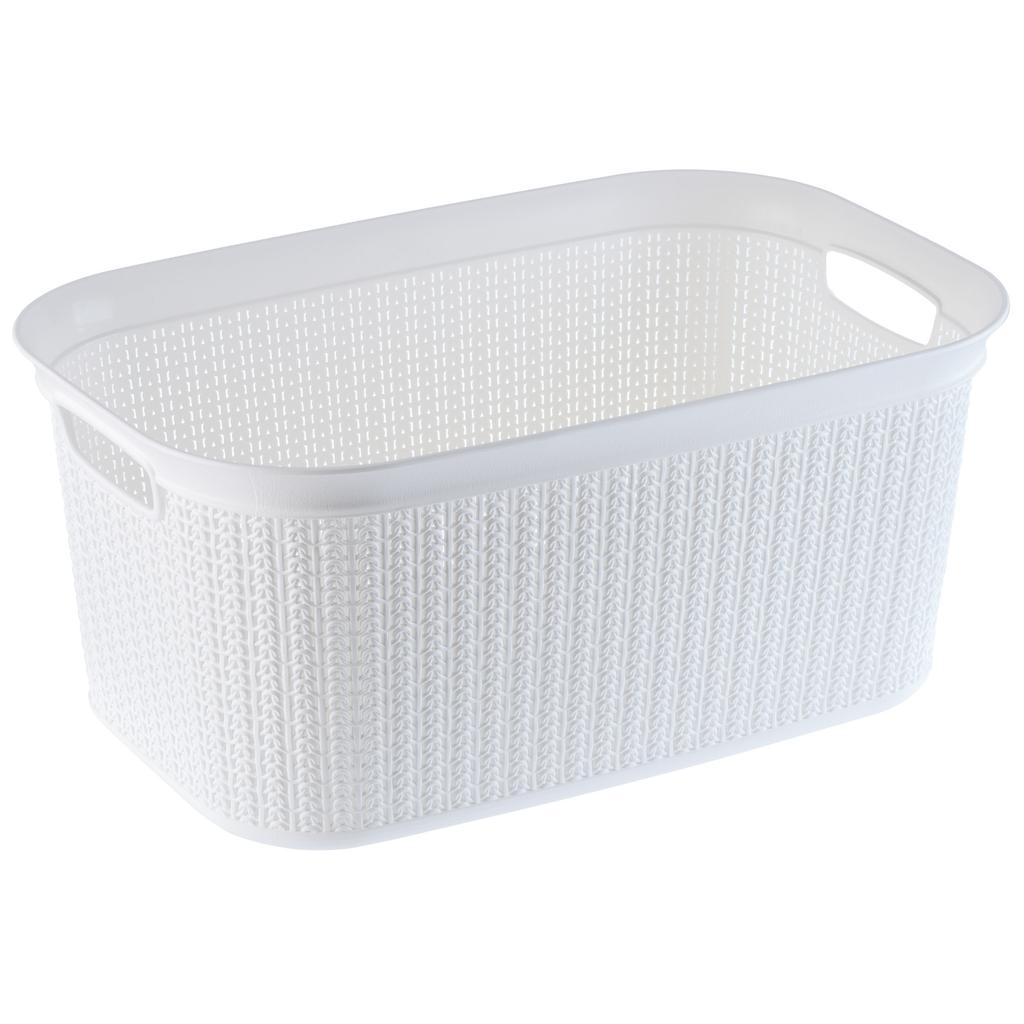 Funktioneller Wäschekorb der Marke KADAX, der sich beim Waschen, Aufhängen und Abnehmen der Kleidung von der Wäscheleine bewährt.. Die solide Verarbeitung des Produkts gewährleistet eine effektive Nutzung, und der universelle Korb erfüllt seine Funktion nicht nur in der Waschküche, sondern auch im Badezimmer oder der Toilette.. Die Aussparungen an den Seiten des Behälters erleichtern den Transport von Hosen, T-Shirts, Jacken oder Unterwäsche und rationalisieren die tägliche Arbeit.. Ein Wäschekorb ist ein unverzichtbares Accessoire in jedem Haus oder jeder Wohnung.. Das Produkt ist eine Kombination aus Eleganz, Einfachheit und Praktikabilität. Das zarte Flechtmuster des Korbes erinnert täuschend echt an Weide, in Kombination mit den gedämpften Farben passt er zu jedem Interieur - skandinavisch, industriell, klassisch, Boho oder Shabby Chic.. Das Accessoire harmoniert hervorragend mit anderen Produkten der Marke – Korb mit und ohne Deckel, für Wäsche, Unterwäsche, oval, Tasche, und bildet ein attraktiv aussehendes und aufeinander abgestimmtes Set, das den Räumen einen frischen Charakter verleiht. Der Korb bewährt sich beim Herausnehmen nasser Kleidung aus der Waschmaschine und beim Aufhängen sowie später beim Abnehmen der Sachen.. In den Behälter passen mehrere Paar Hosen, Pullover, T-Shirts, Jacken, Blusen, Hemden. Der Korb kann auch unser Badezimmer ausstatten und als Behälter für größere Kosmetika oder elektronische Artikel wie Föhne, Glätteisen, Rasierapparate oder Haarschneidemaschinen dienen.. Der Korb bewährt sich bei der Aufbewahrung von sauberen Handtüchern, Reinigungsmitteln, Spielzeug oder Toilettenpapier. Der Artikel ist vollständig aus hochwertigem Kunststoff gefertigt, der im Raum attraktiv und ästhetisch aussieht.. Zusätzlich ist das Produkt stoß-, druck- und kratzfest sowie sehr leicht, was ein bequemes Tragen, Heben und Transportieren ermöglicht.. Das Zubehör ist an den Seiten mit zwei Aussparungen versehen, die die Benutzung des Artikels und das Tragen eines Korbs voller Kleidung, Accessoires oder Kosmetika erleichtern.. Der Artikel ist die Erfüllung der Träume jedes Designliebhabers im Badezimmer, denn es sind ganze fünf Farbvarianten erhältlich - weiß, creme, grau, schwarz, graphitfarben. Die große Kapazität des Produkts - 27 Liter - ermöglicht es, die Wäsche für die ganze Familie zu waschen oder die Kleidung der ganzen Woche zu trocknen.. Zusammen mit anderen Produkten der Serie macht es eine gute Figur und bildet ein praktisches Set, das die Erledigung von Aufgaben erleichtert.. Der Korb ist recycelbar.