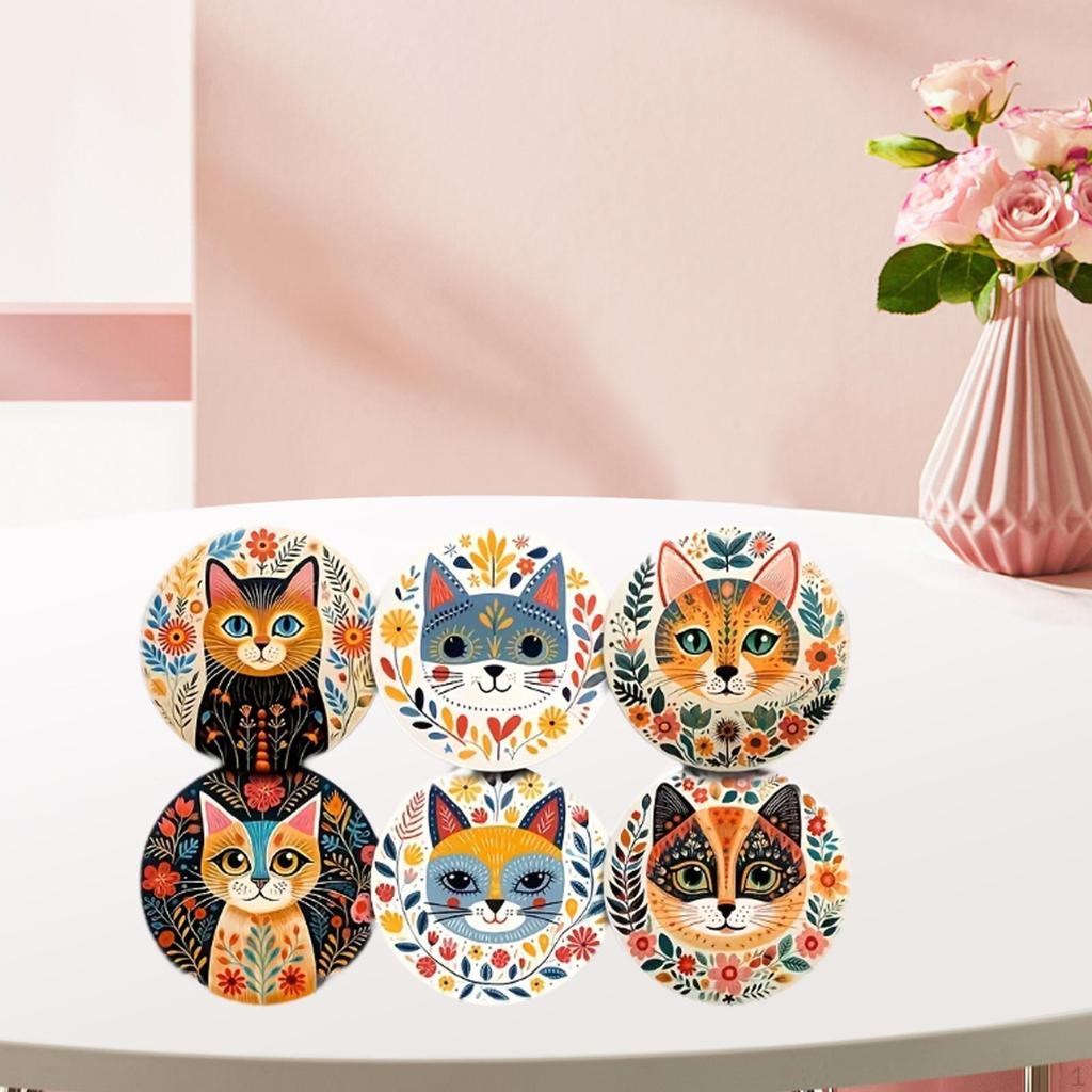 6 Stück Untersetzer aus Holz mit Katzenmotiv für Getränke Moderne Tassenuntersetzer Isoliermatte Geschenk für Liebhaber Holz
